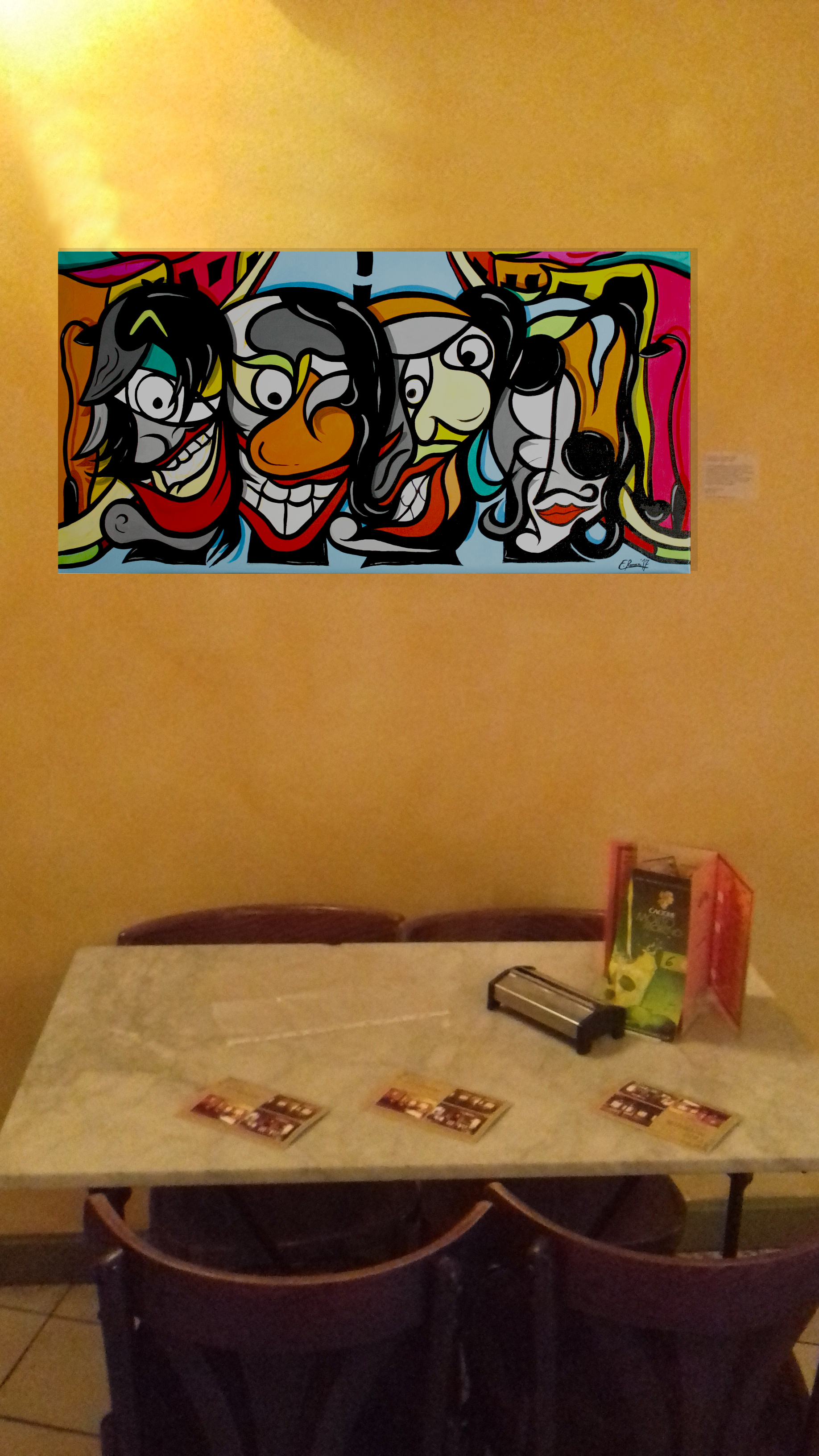 Un enclave perteneciente a la movida madrileña de los años 80 donde el pintor manchego muestra su peculiar estilo denominado «CURVISMO» y en el que se pueden ver sus conocidos personajes célebres dentro de un espacio que nos lleva a esos cafés de los años 30.
